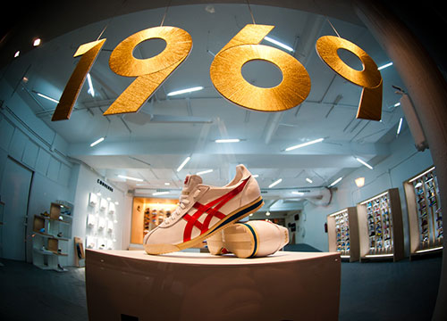 Implantación temporal de escaparate promocional en tienda para Onitsuka Tiger. Diseño, desarrollo y producción de proyecto.