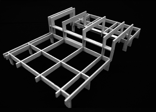 - Proyecto de vivienda unifamiliar. La estructura de la casa se proyecta en hormigón, así como toda la envolvente. La envolvente del edificio se convierte en una lámina "petrea" que enmarca y recorre los diferentes espacios del proyecto. La vivienda se organiza en torno a dos patios interiores, que consiguen distribuir las estancias de una manera lógica.