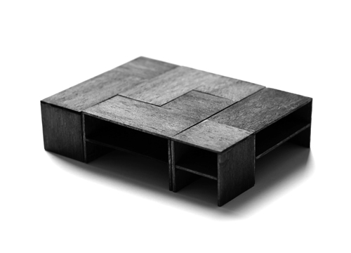 - Mesa baja de café. Diseñada para obtener multitud de configuraciones en función de la necesidad. Tiene una altura que permite utilizar sus elementos tanto como mesas auxiliares como taburetes. Las piezas se disponen creando una mesa unitaria rectangular, mesas de formas variadas, o mesas individuales pequeñas. También permite su disposición en altura.