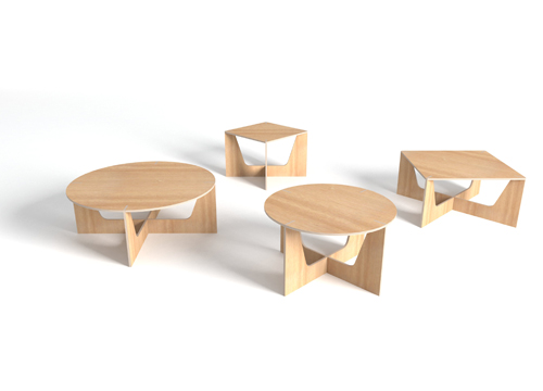 - Conjunto de mesas bajas auxiliares. En dos tamaños, y en dos formatos, y con diferentes colores y acabados. La simplicidad es el elemento característico de estas mesas. Con una línea de diseño basada en la silla CH01, pretenden ser complemento de estas. Se presentan tanto el contrachapado fenólico de abedúl finlandés, como el lacado de diversos colores, así como con el sobre de vidrio.